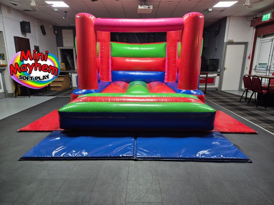 This bouncy castle is a low height one and will fit in most venues. See the images below to see it set up as part of a package with softplay for some added fun for the little ones to all enjoy.