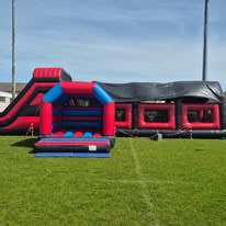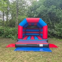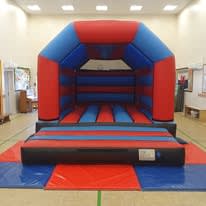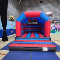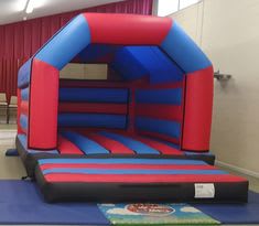 As you can see from the photo its mainly red and blue in colour and can be hired Plain as in the photo or as part of our Superhero Packages as it can with Superhero artwork attached if that's a theme your looking for.