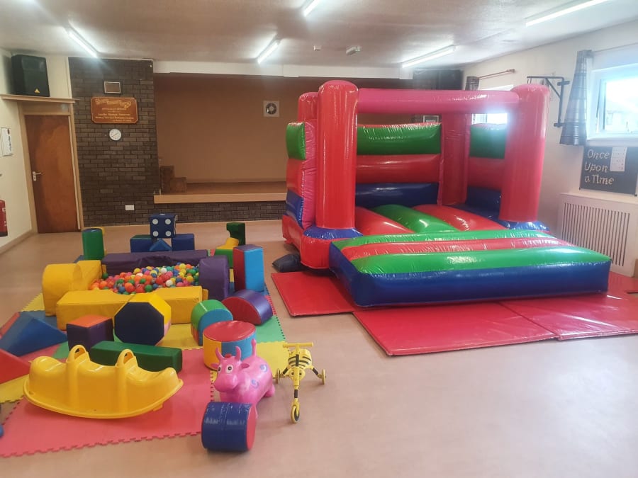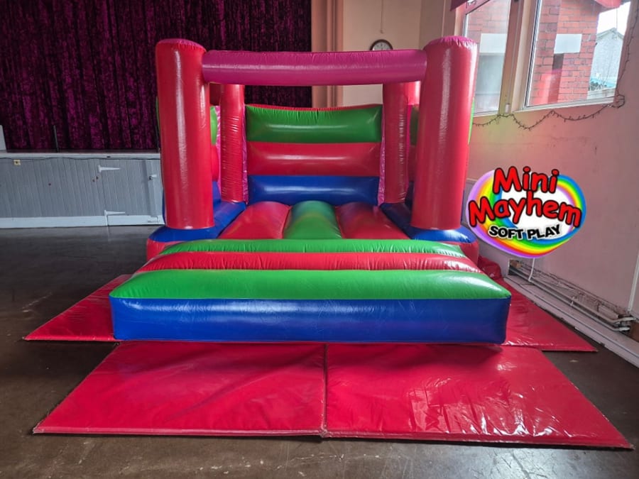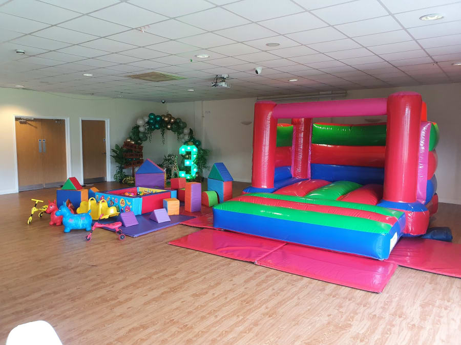 This bouncy castle is a low height one and will fit in most venues. See the images below to see it set up as part of a package with softplay for some added fun for the little ones to all enjoy.