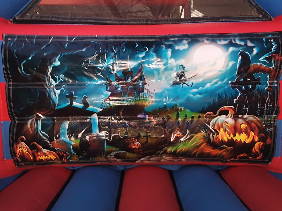 With various Halloween scenes printed on the front of the pillars, archway and back of the bouncy castle its going to catch the attention of all your guests.