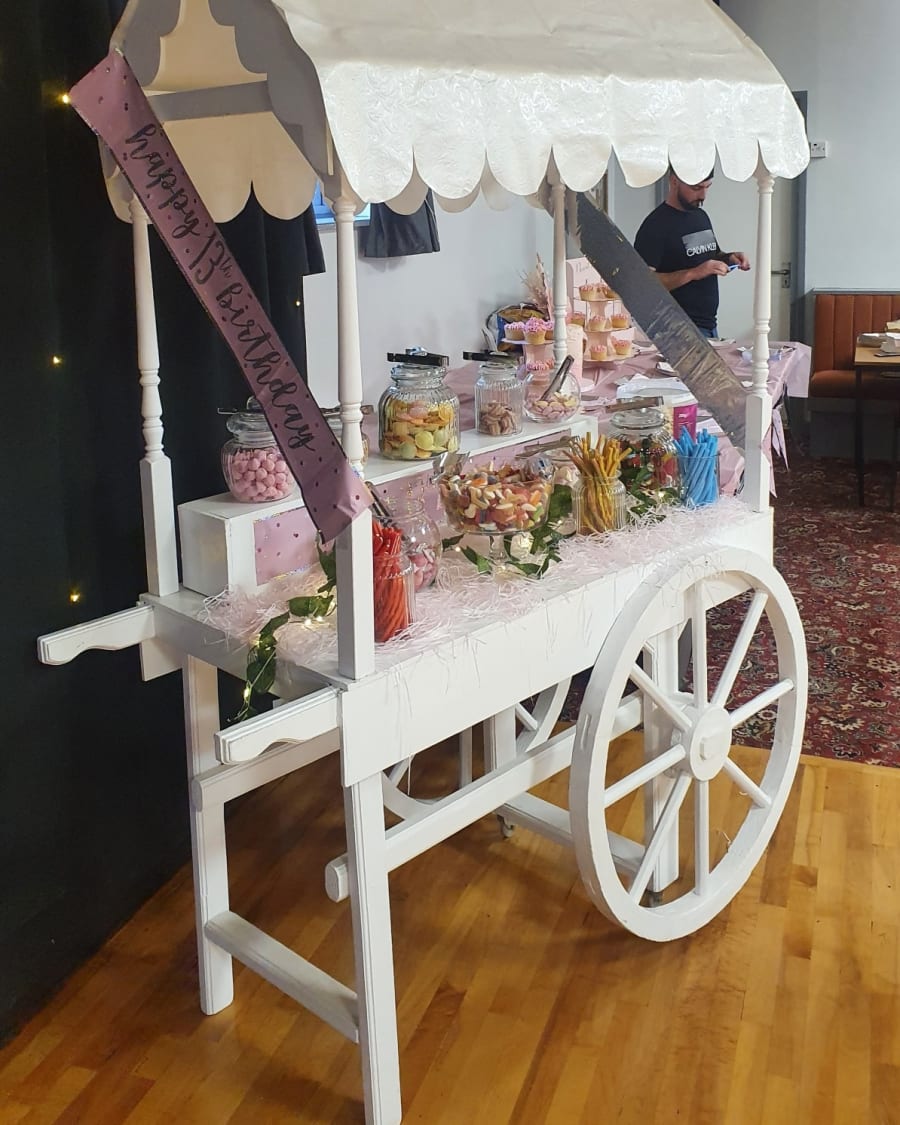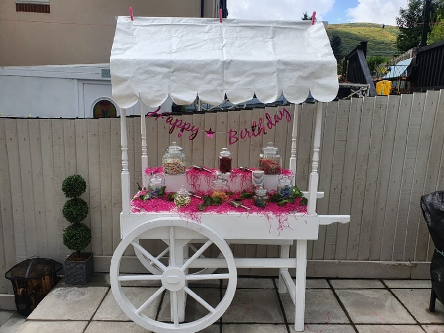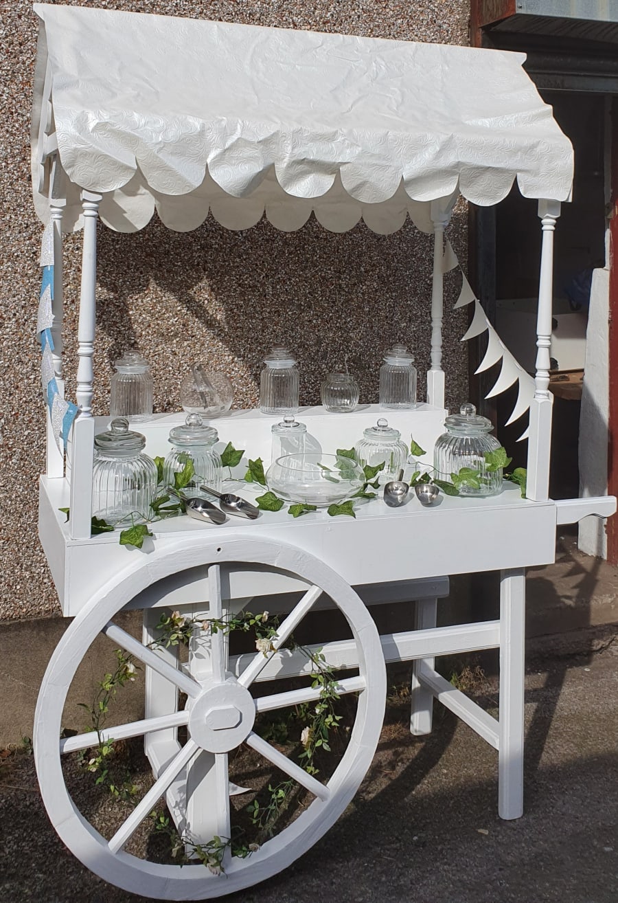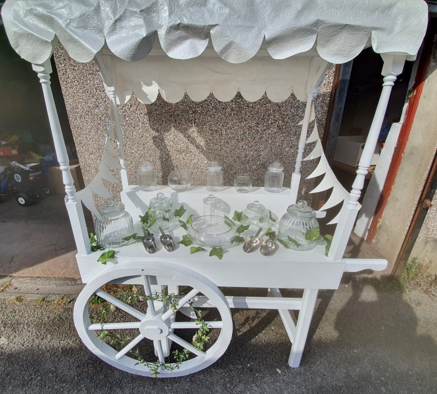 The Sweet Cart is available on it's own which includes the sweet cart, jars, tongs, bags and decorated according to the necessary theme and all you need to do is provide the sweets yourself.