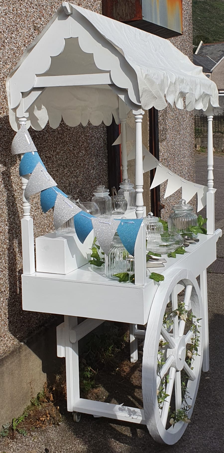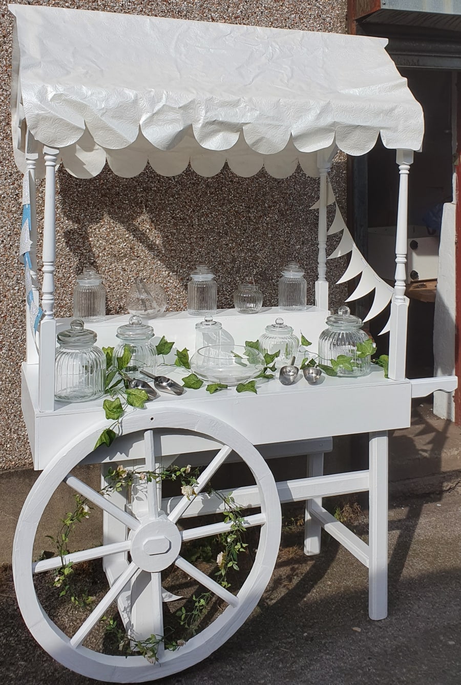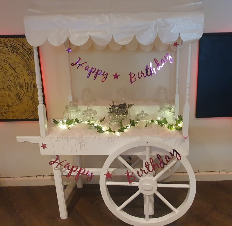 The Sweet Cart is available on it's own which includes the sweet cart, jars, tongs, bags and decorated according to the necessary theme and all you need to do is provide the sweets yourself.