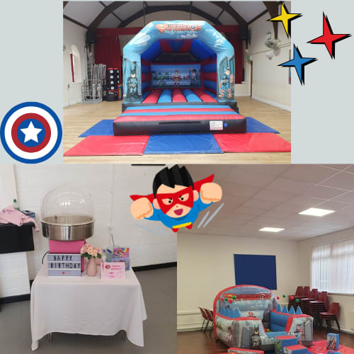If you have a big enough hall or garden and have plenty of people coming then why not add our Small Superhero castle as an extra bit of fun.