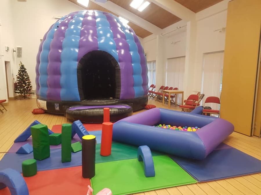 This package is suitable for both indoors and out but needs a room with a very high ceiling of at least 18ft for it to be fully inflated and needs to be at east 20ft in width to allow us room to set out the softplay area.