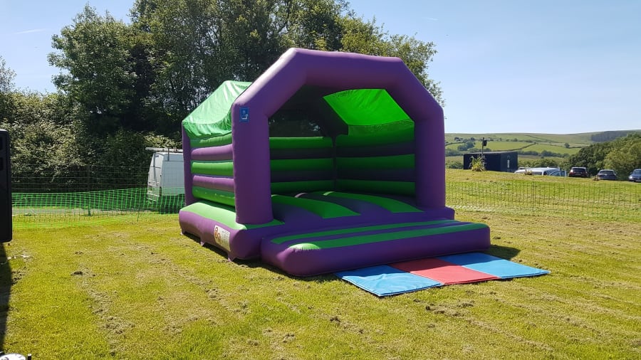 Our Green & Purple coloured Adult Bouncy Castle and our Popcorn Machine are a great combination for school fetes and fundraisers alike.