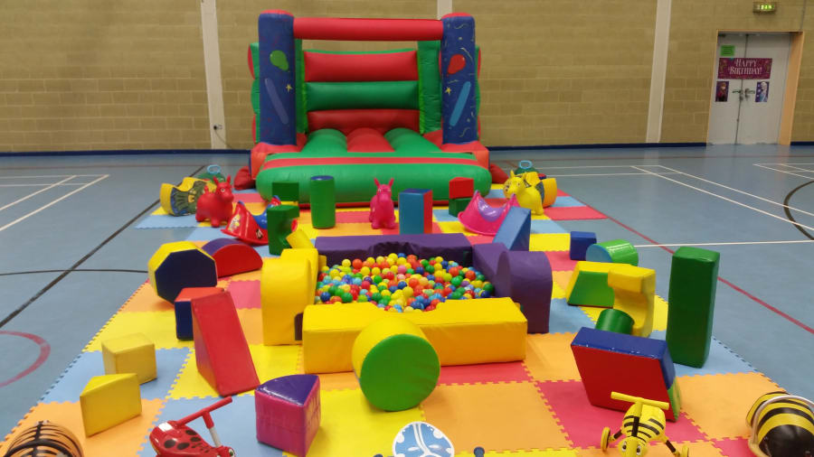 We usually set the ballpit in the middle of the mats and then set the softplay shapes around the outside with the hoppers and scuttle bugs on the outside of the matted area so the children can use them in and around your venue room.